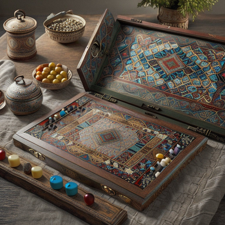 Turkish Backgammon Board Game Set - Elegant Mosaic Design for Classic Fun