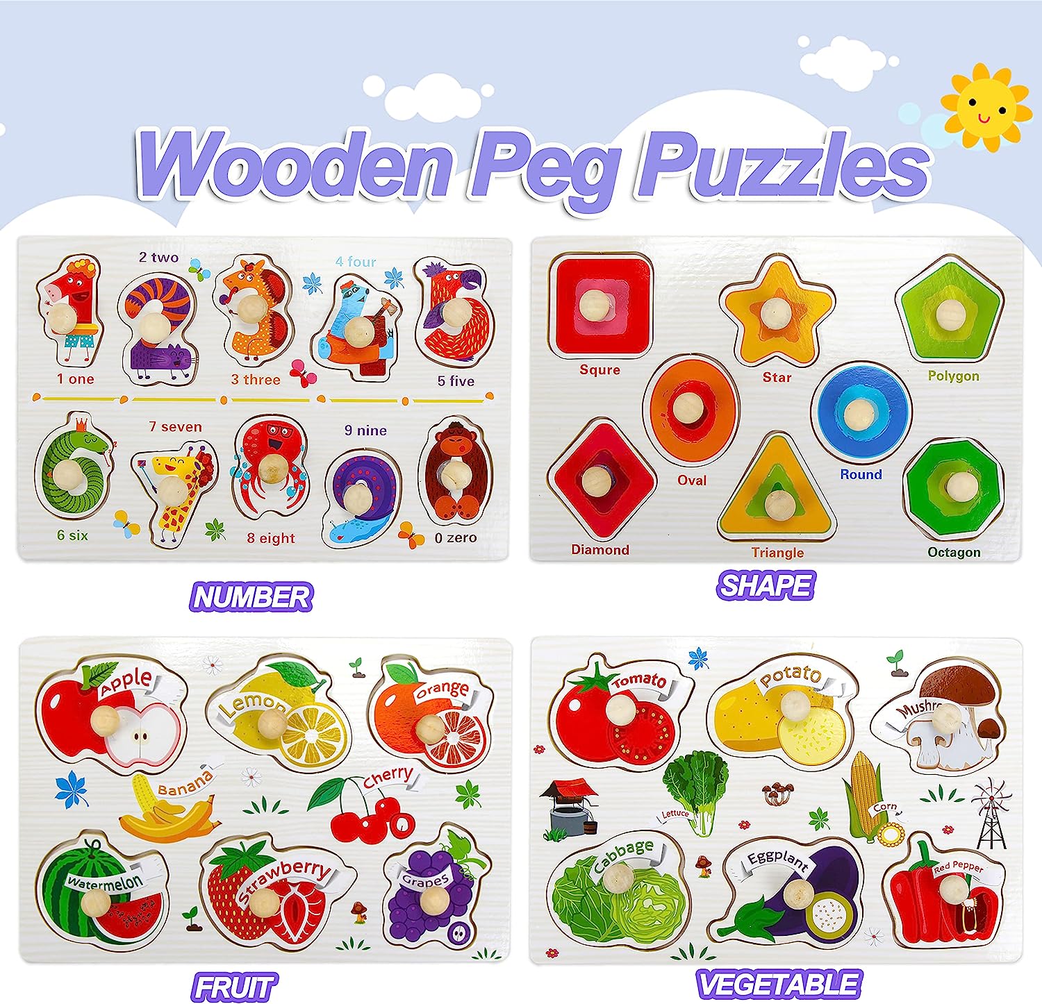 Value Pack: Come with 10pcs wooden peg puzzles with easy-to-grip nails. Very value, with bright color and vivid images, are the best early education toys for kids.