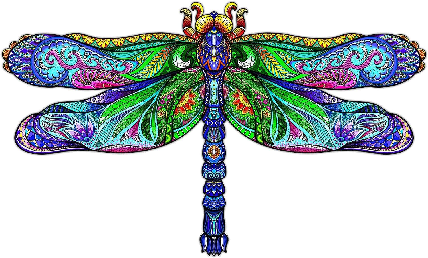 Wooden Jigsaw Puzzles-Wooden Puzzle Adult Unique Shape Advanced Big Dragonfly Wooden Jigsaw Puzzle for Adult, Family Puzzles 33.4 * 20in 702pcs